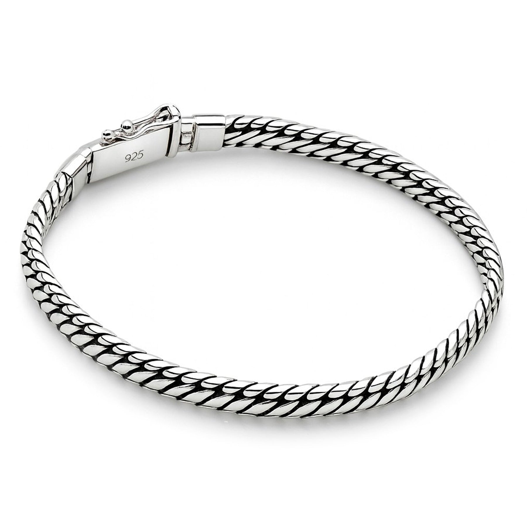 Styled on a classic retro chrome bumper yet made in high quality sterling silver. This nice weight handmade Balinese bracelet is made with exceptional artistry & attention to detail. The jewellers weave the silver into this solid looking sturdy piece that will sit well with any look.