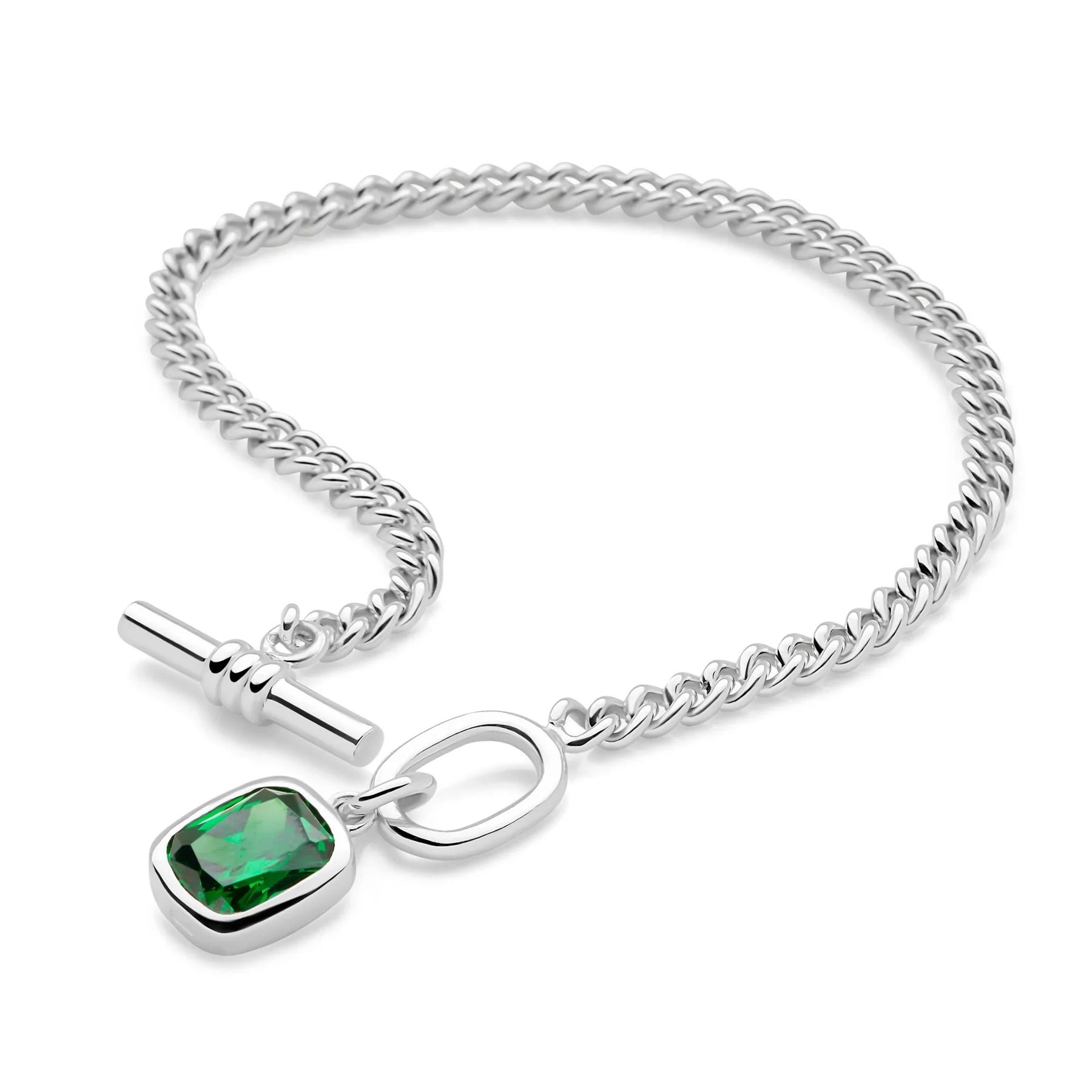 We just love the rich tones of this vibrant green zirconia charm, suspended upon a lovely weight chain & finished with a classic T-bar clasp.