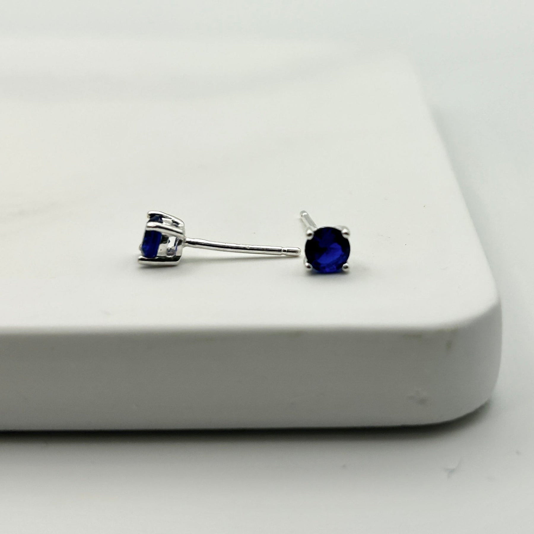 Truly stunning studs made from sterling silver with solitaire sapphire cubic zirconia stones. Each stone is cleverly set on a tiny raised platform to enhance the stone with natural light for a breathtaking sparkle. This design is a classic everyday wear or will make a wonderful gift for someone special.