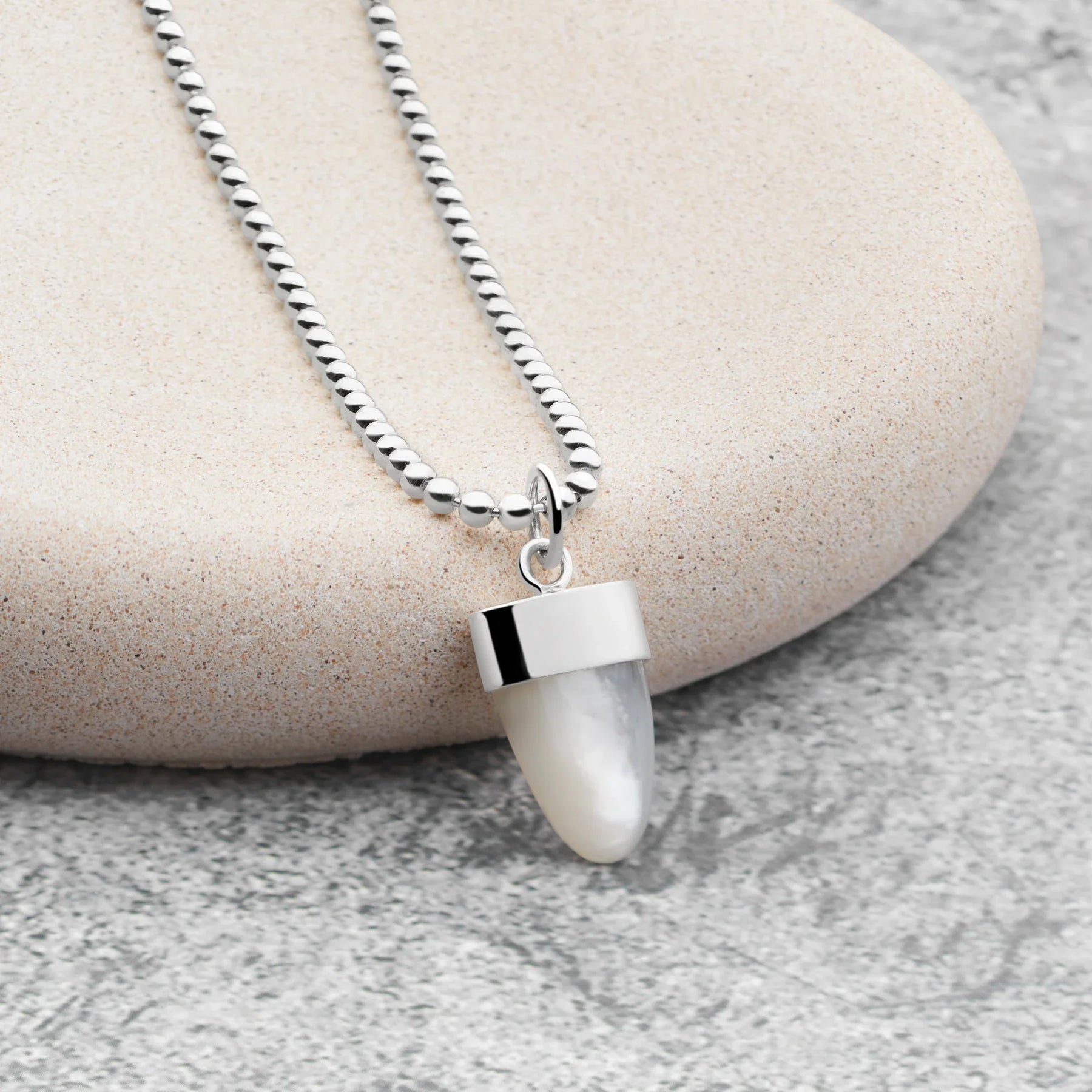 Elevate your look with this Shark Tooth pendant with cool mother-of-pearl set in high polished, high quality sterling silver. A stand-out piece in our men's jewellery collection, this shark tooth design delivers a powerful masculine look adding strength with a refined confidence to your look.